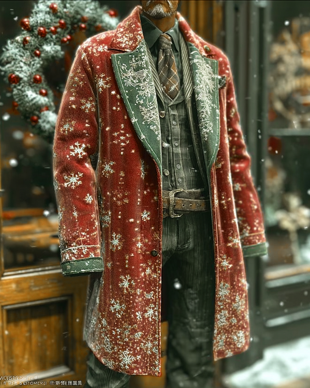 Men's stylish and comfortable Christmas-themed embroidered Christmas cape coat 1730