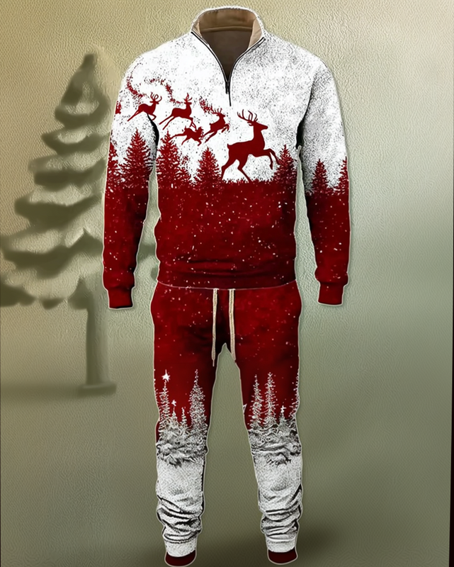Men's Autumn and Winter Christmas Holiday Party Reindeer Sweatshirt + Pant Two Piece Set 2232