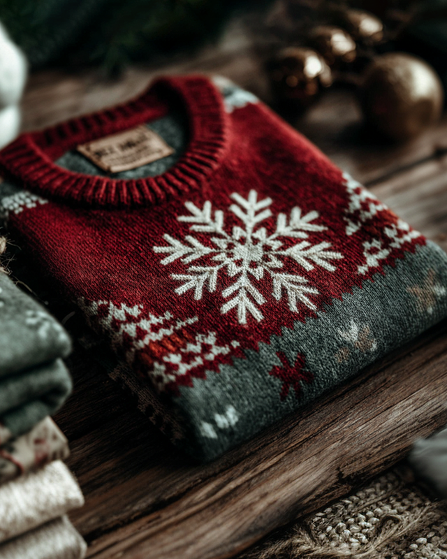 Men's autumn and winter Christmas themed snowflake embroidery contrast color stitching round neck sweatshirt 2449