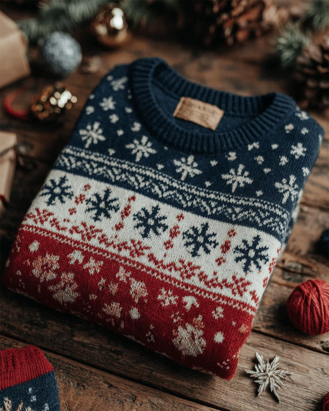 Men's autumn and winter Christmas themed snowflake embroidery contrast color stitching round neck sweatshirt 8666