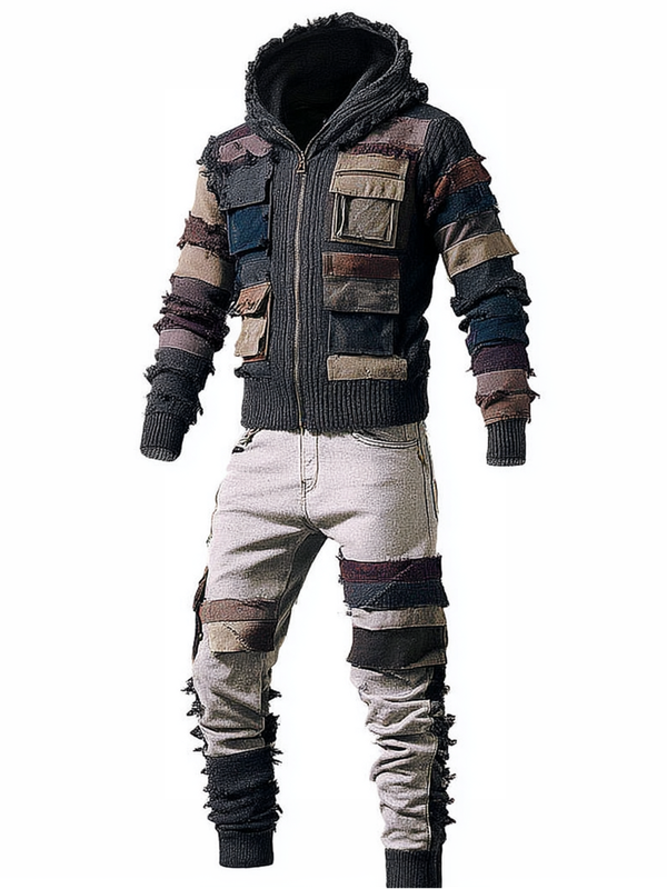 Men's Autumn and Winter Fashion Contrast Color Hoodie Sweatshirt+Pants Set 9743