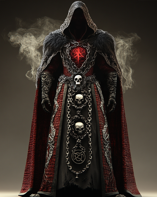Men's autumn and winter fashion design three-dimensional skull chain element fur collar hooded cloak 8077