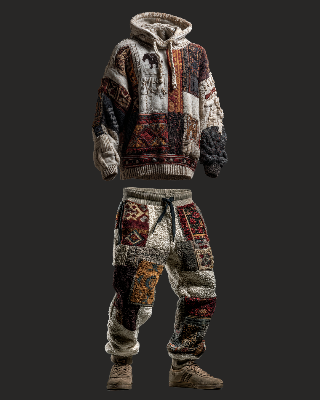 Men's Autumn/Winter Fashion Color Block Two-Piece Set 1956