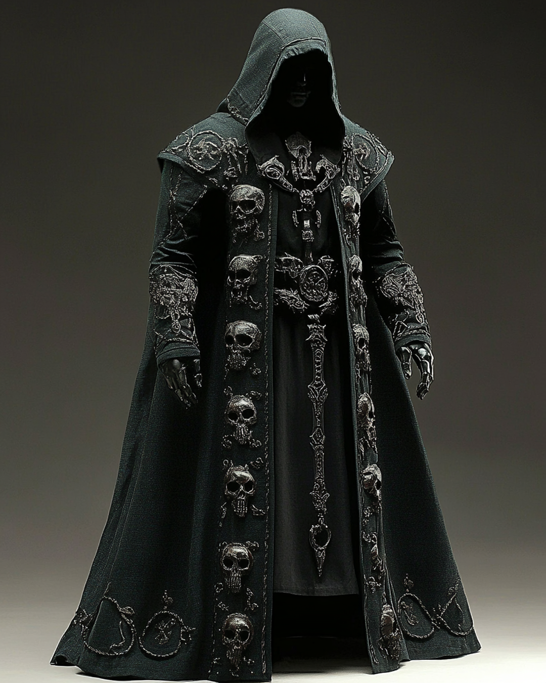 Men's Halloween Contrast-Color Skull Studded Embroidered Hooded Cape 957d