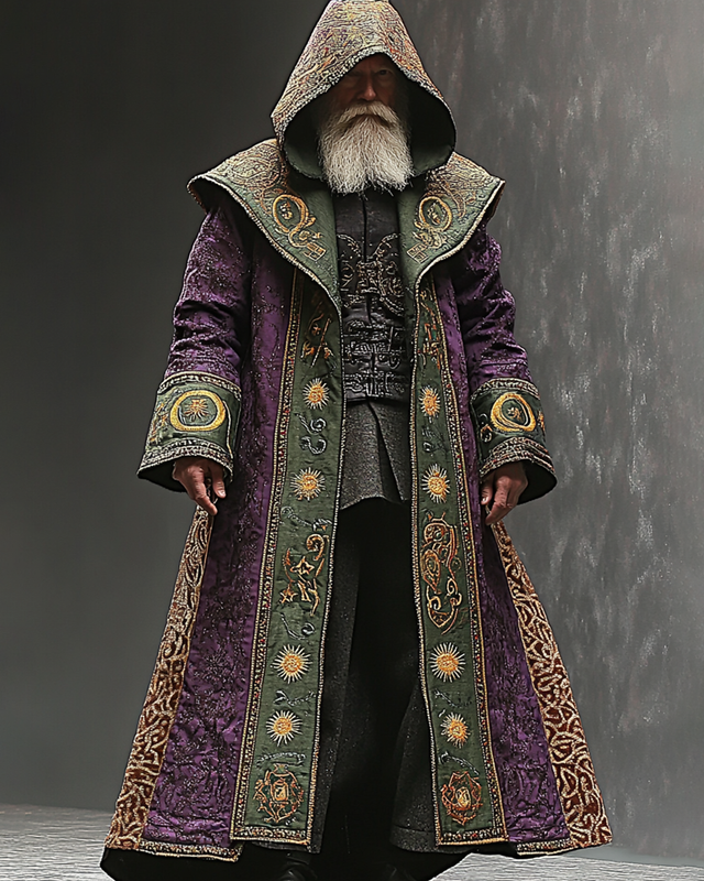 Men's Contrast-Color Viking Star-Moon Embroidered Hooded Cape 2992
