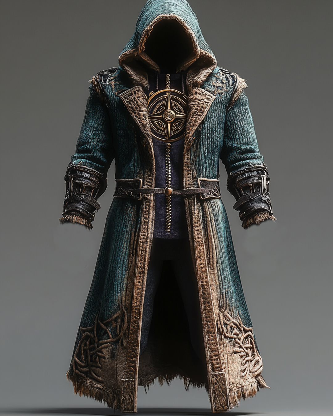 Men's Viking Contrast-Color Compass Embroidered Knit Hooded Jacket 7078